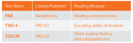 - The TOSCRF, also published by PRO-ED, measures silent reading fluency and is a good measure of comprehension, as well. This test is pretty unique in its format. The student sees passages in upper case, without punctuation or spaces between the letters. The student has three minutes to put a line between as many words as possible, identifying the words that make up the passage. This test requires the student to recognize words, but also to understand the meaning of the passages and be able to read and understand the material at a fast enough pace to make silent reading practical and, hopefully, enjoyable. While not explicitly stated by the publisher, this test is also measuring encoding ability.
