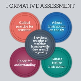 When correctly incorporated into classroom practice, the formative assessment process provides information needed to adjust teaching and learning while they are happening. The process serves as practice for the student and a check for understanding during the learning process. The formative assessment process guides teachers in making decisions about future instruction.
